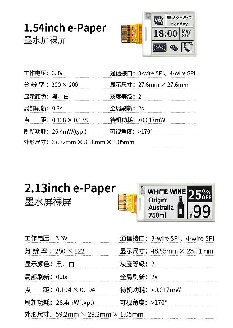 墨水屏裸屏 e-Paper 黑白屏4.2"