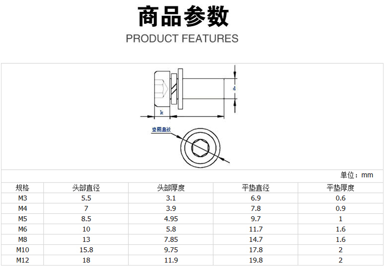 12.9級內六角組合螺絲