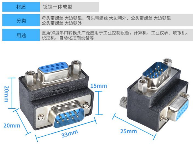 DB-9(M/F)-90度-母頭帶螺絲公頭下彎