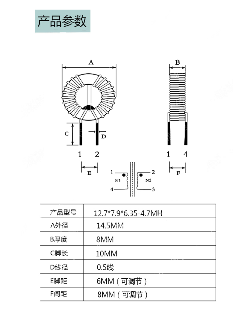 環形共模電感-12.7*7.9*6.35-0.5線-4.7mH