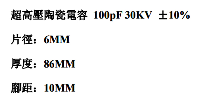 高壓陶瓷電容 1000pF/15KV ±10%