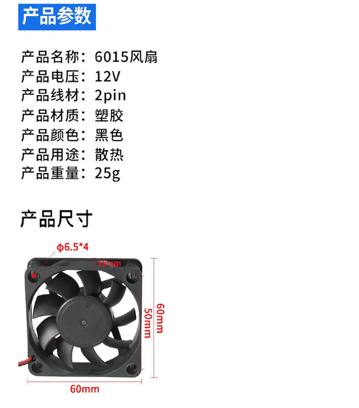 風扇-60*60*15mm-DC12V-20cm-4000RPM