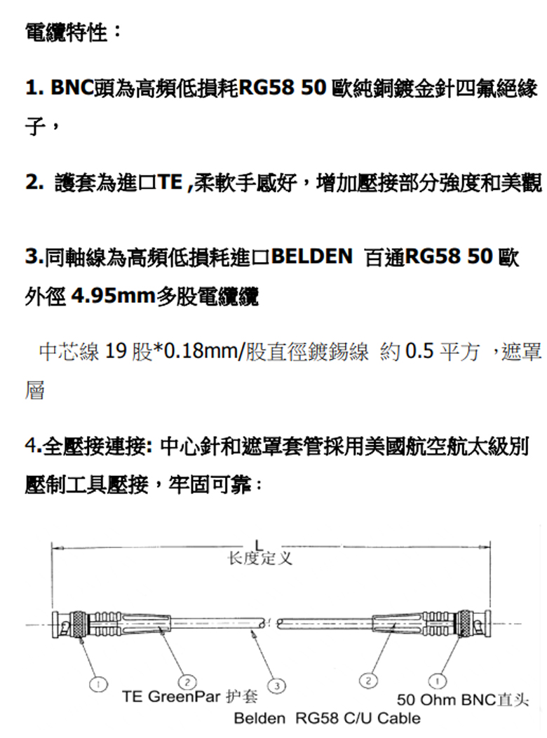 專業測試級BELDEN-RG58低損耗50歐BNC公對公射頻同軸線全銅鍍金針 黑色5M