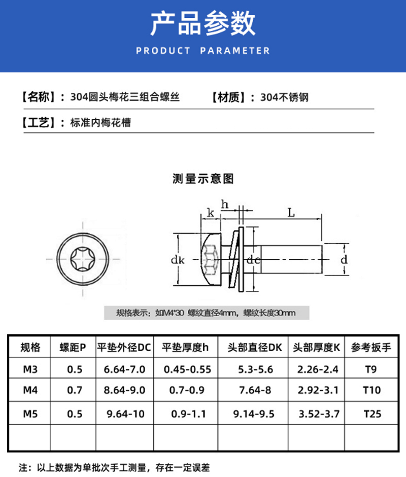 304-圓頭梅花三組合-M3*10