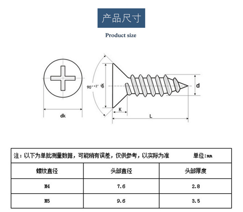 彩鋅十字平頭自攻螺絲