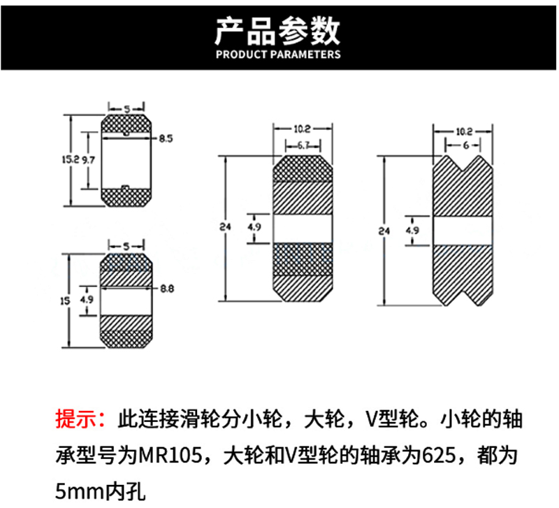 塑膠滑輪-大輪透明內孔5mm+軸承