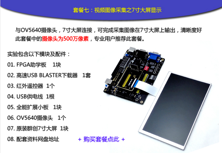 ALTERA-EP4CE6E22C8-套餐7+500萬攝像+7寸屏