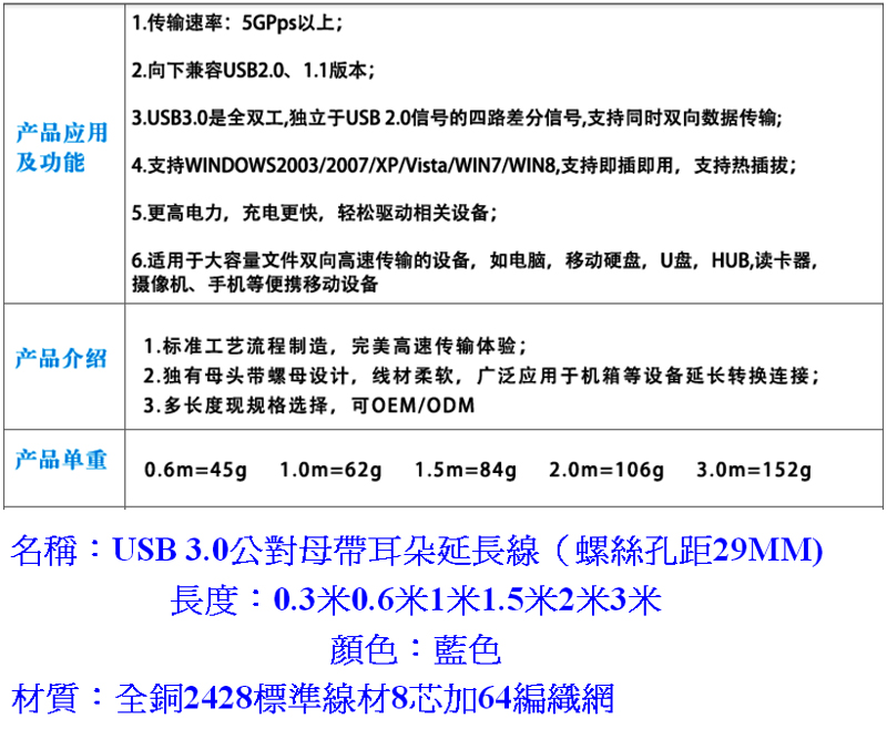 USB3.0 帶耳孔延長線