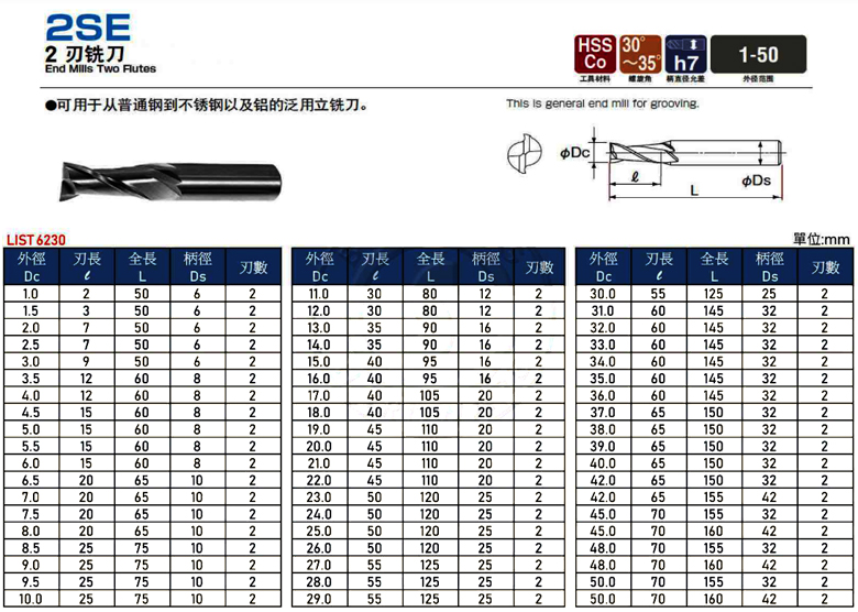 NACHI_超硬 2 刃銑刀 HSS-CO