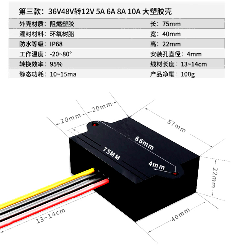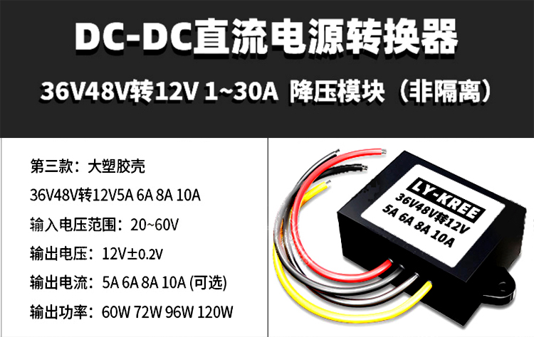 DC-DC降壓模塊 36V/48V轉12V5A 膠殼