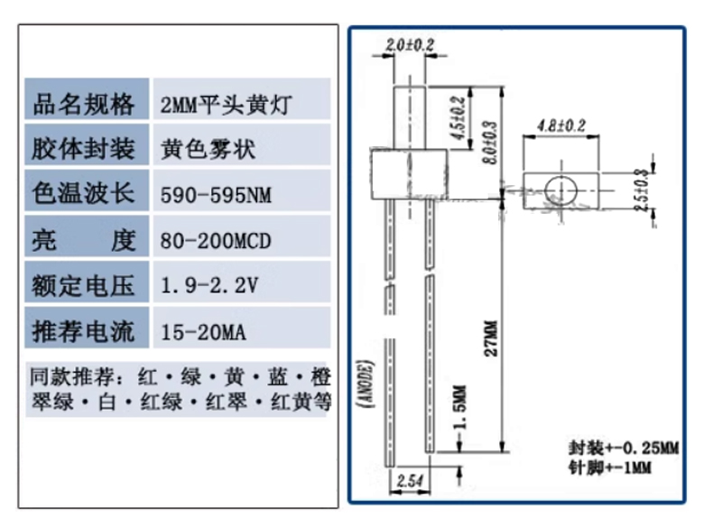 長平頭塔形-F2-2mm-黃髮黃光