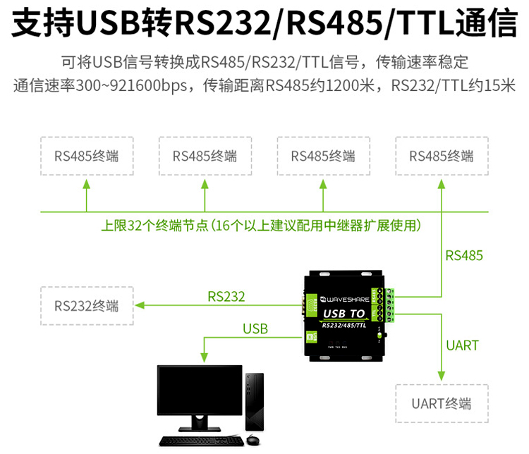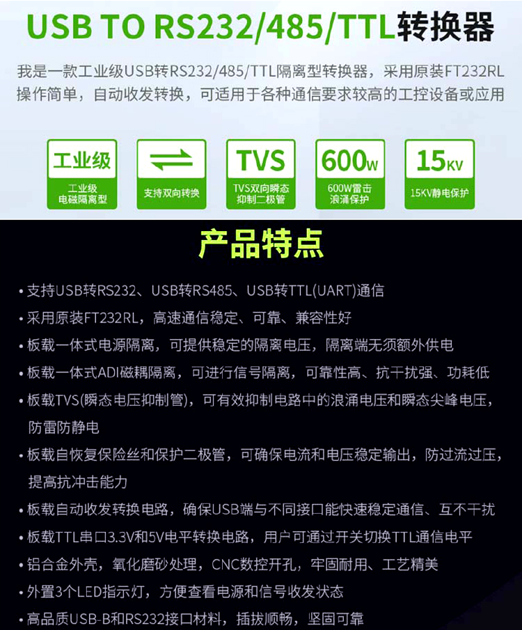 微雪_USB轉RS232/RS485/TTL模塊 工業級帶隔離