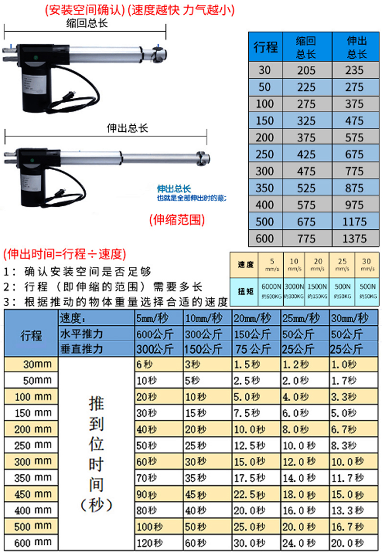 LX600直流推桿電機-30mm/S-500N-150mm-DC24V