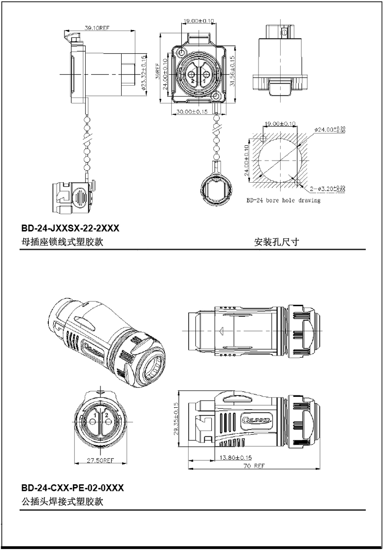 CNLINKO BD24型4芯金屬法蘭母插頭