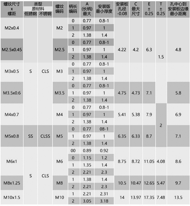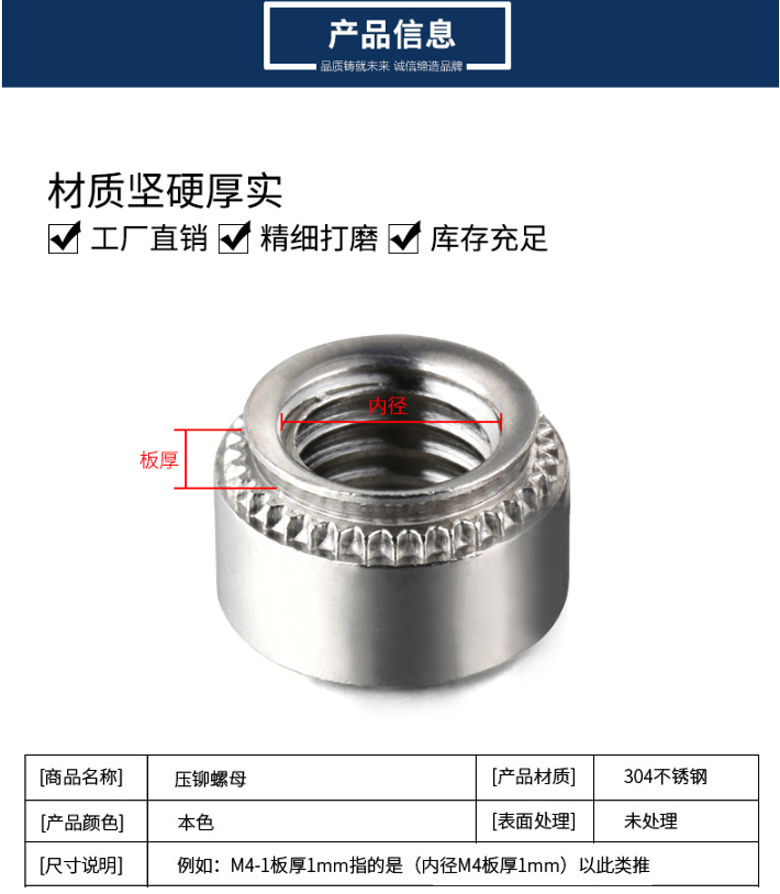 304-壓鉚圓螺母-M5-2板厚1.4mm