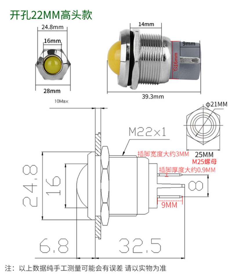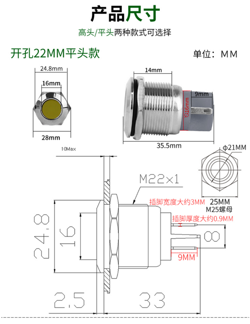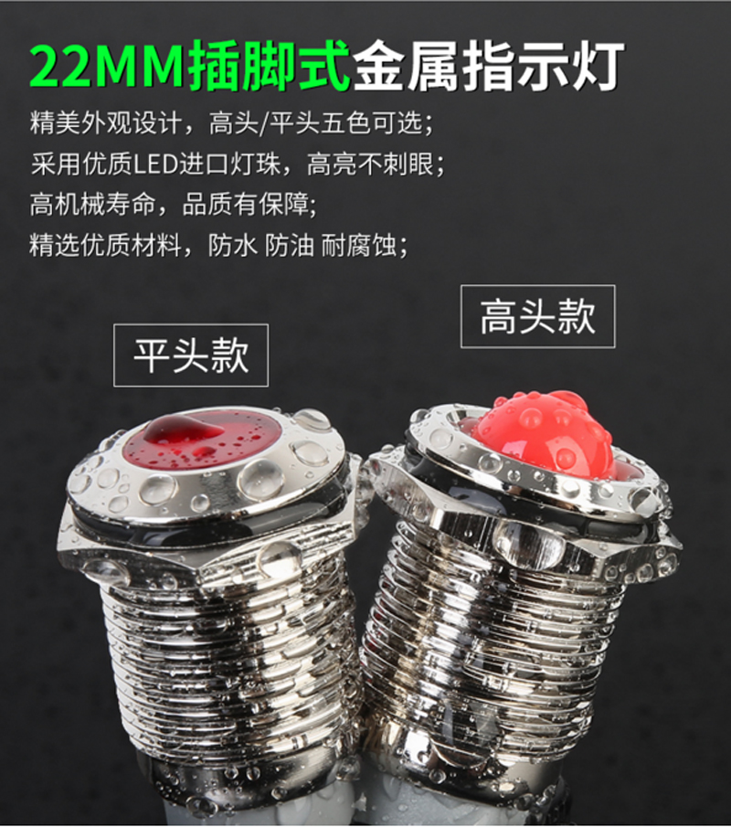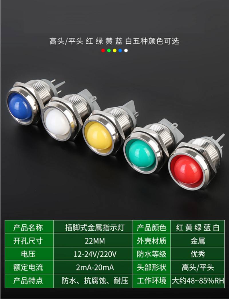 22mm插腳-高頭-金屬指示燈-12-24V-藍