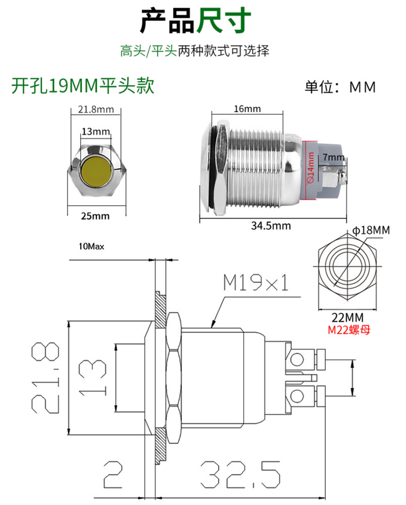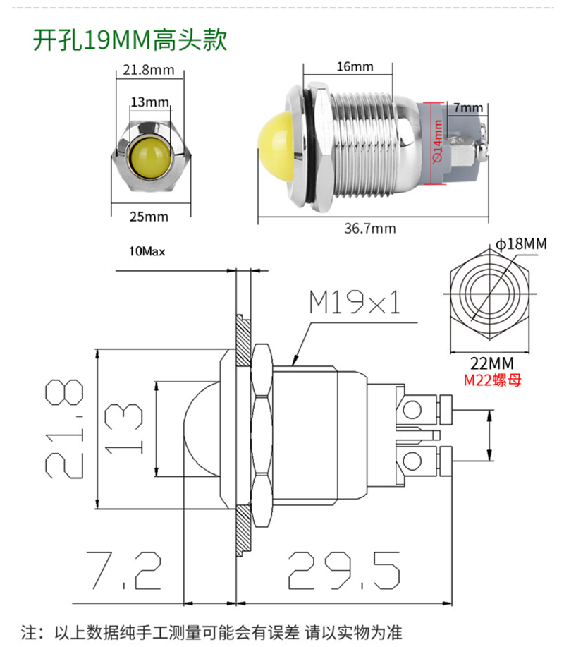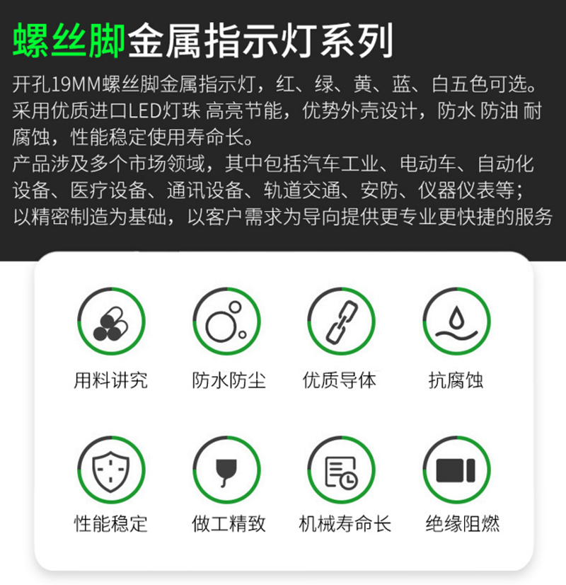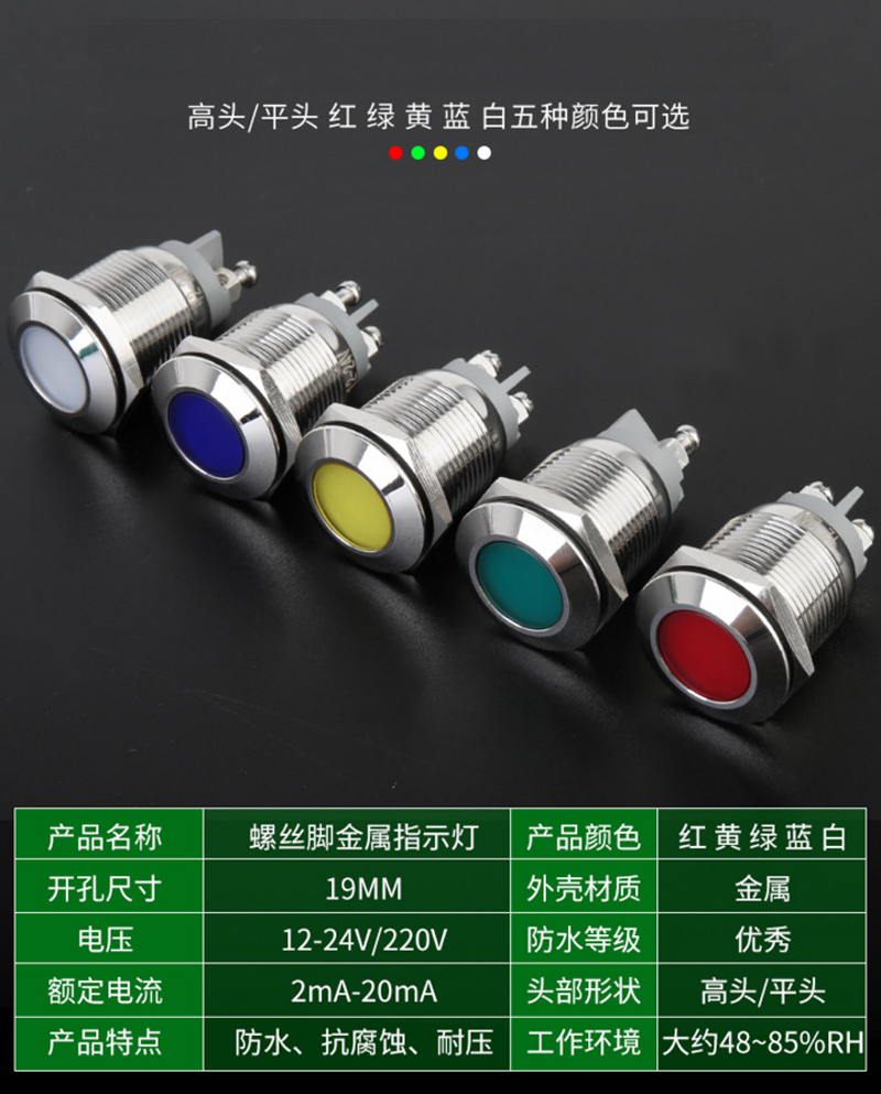 螺絲腳高頭金屬指示燈 19mm