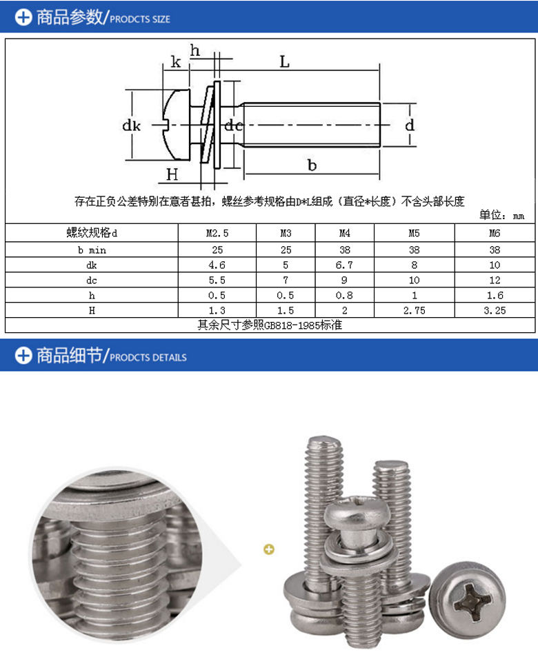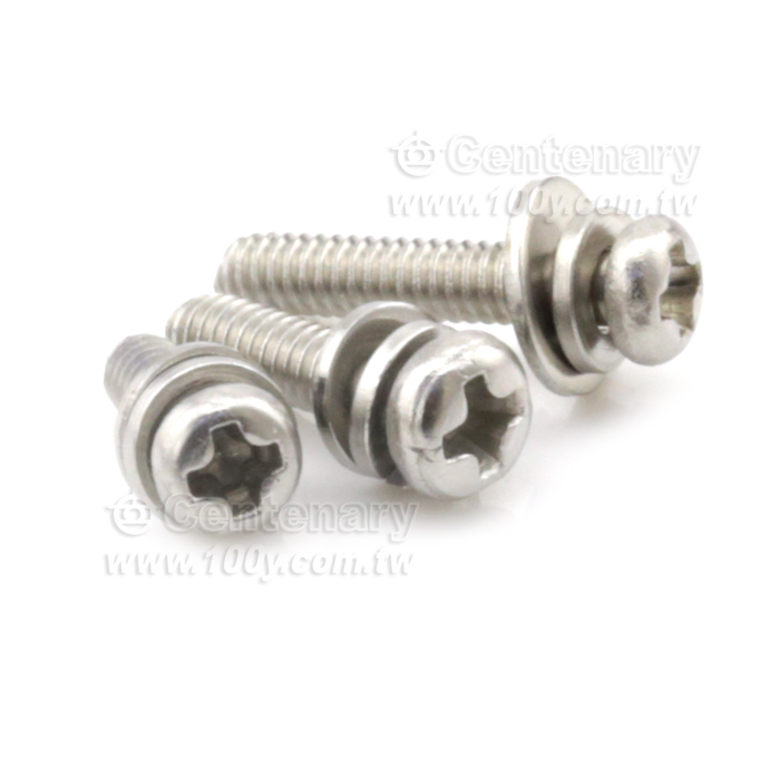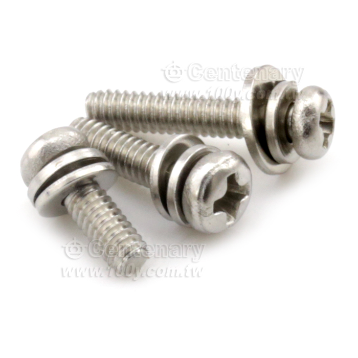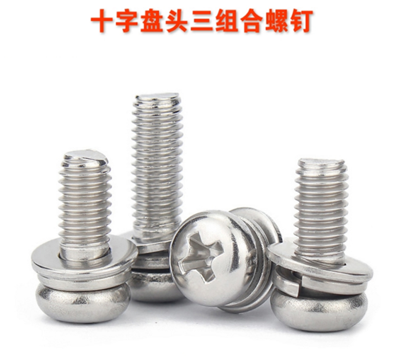 '304不銹鋼圓頭十字三組合(彈墊和平墊)螺絲