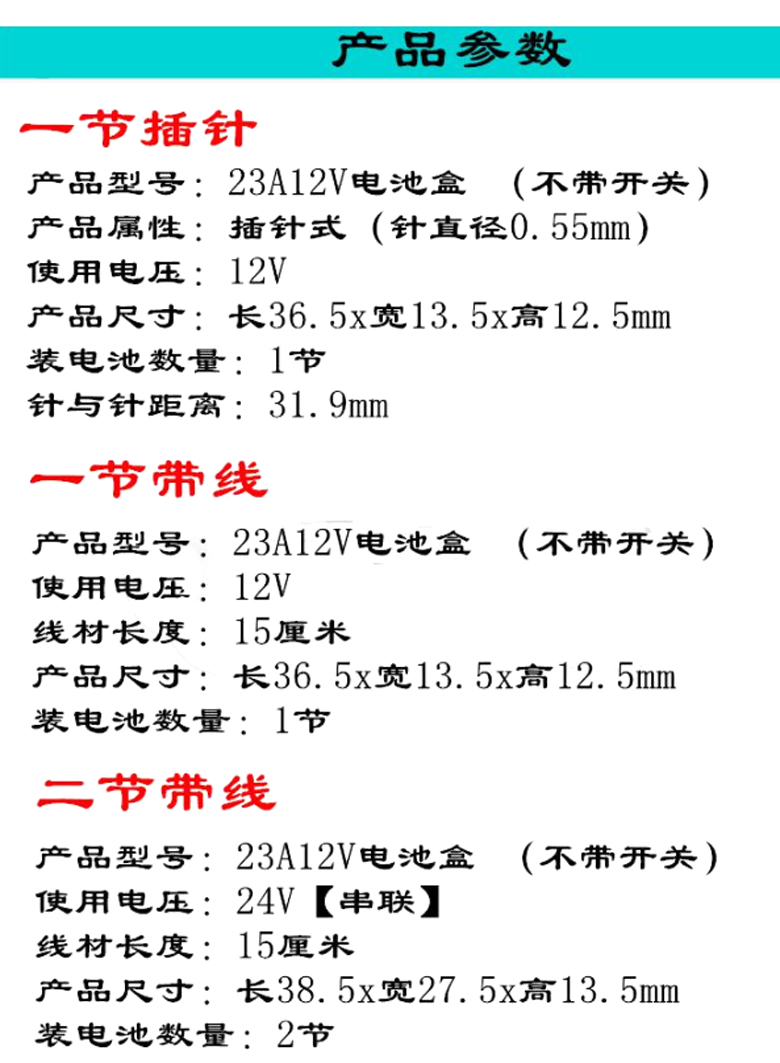 23A/12V一節電池盒