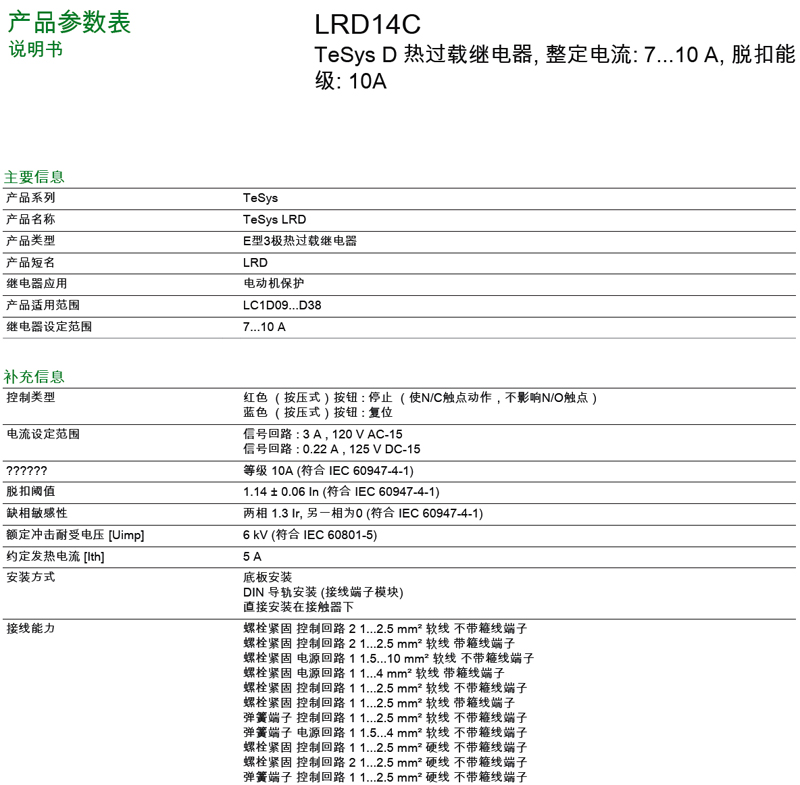 Schneider_LRD14C 熱過載繼電器