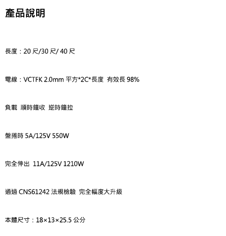 可拉長電纜捲盤 40尺(12.1M)