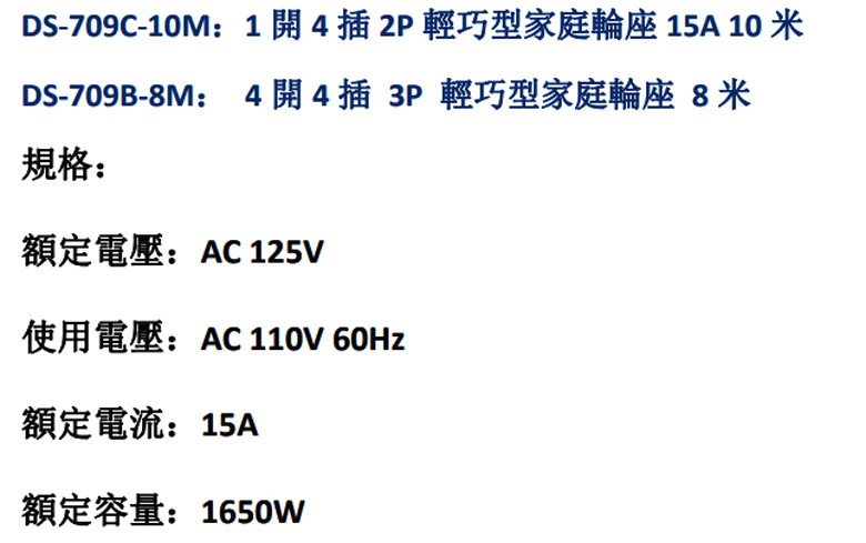 3P 4開4插輕巧型家庭輪座 8M