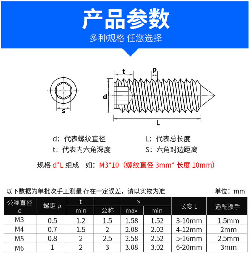 黃銅內六角尖端緊定機米
