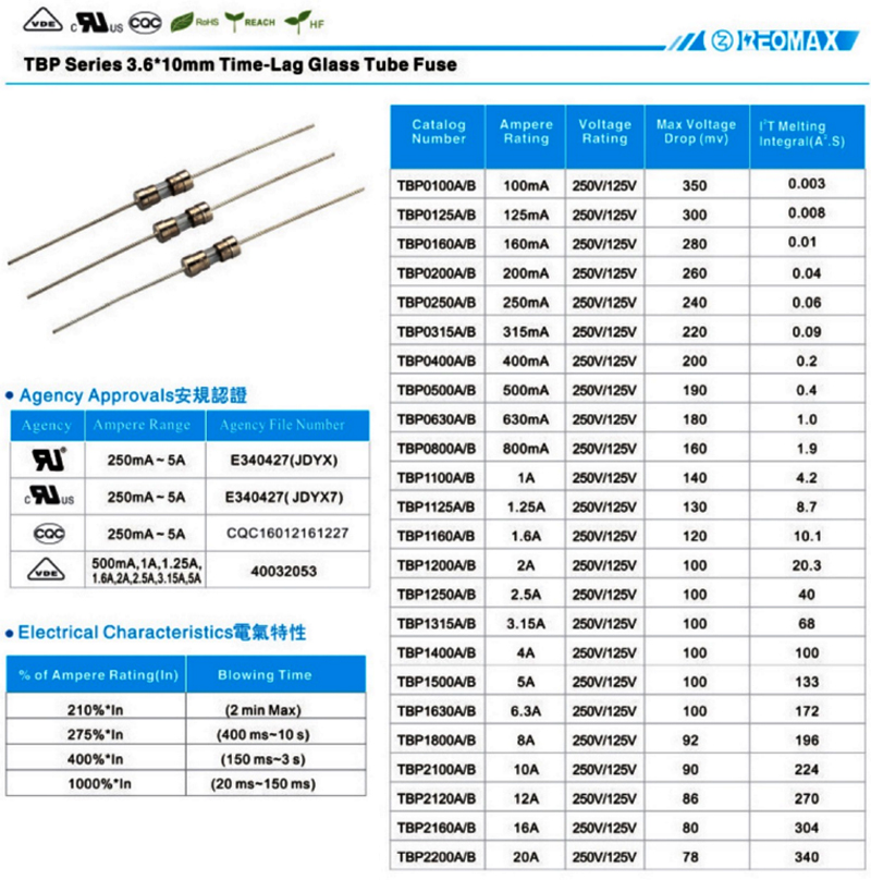 TBP系列 慢熔陶瓷管保險絲