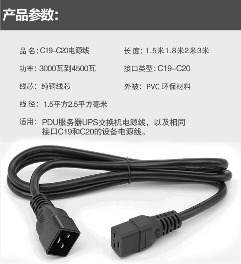 PDU UPS交換機電源線C19轉C20國標純銅 2.5平方電線