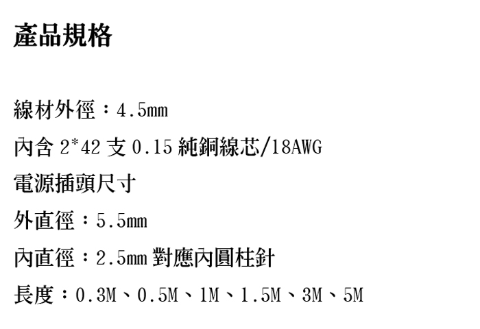 DC5.5*2.5(M/M)-0.75平方-直頭-1.5M