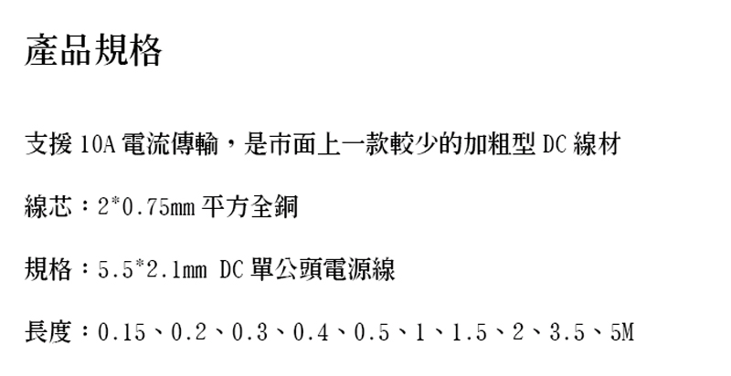 DC5.5*2.1(M)-0.75平方-直頭-2M