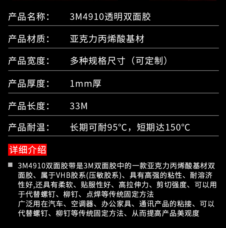 3M-4910VHB-透明雙面膠帶-15*1mm*33M