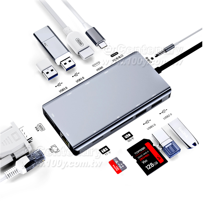 Type-C-11合一-HDMI+VGA+讀卡+網卡