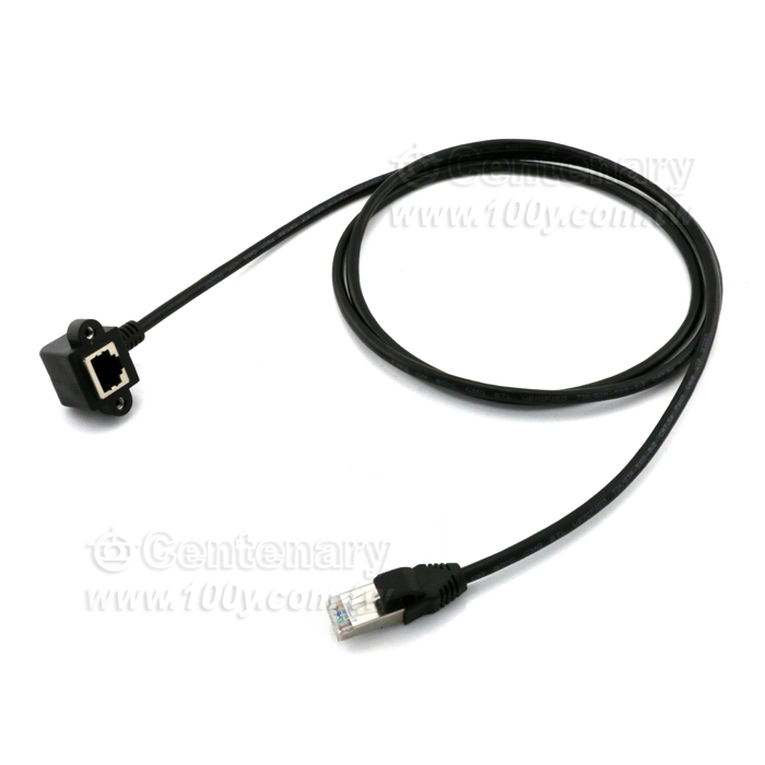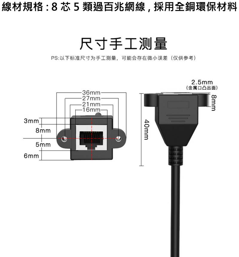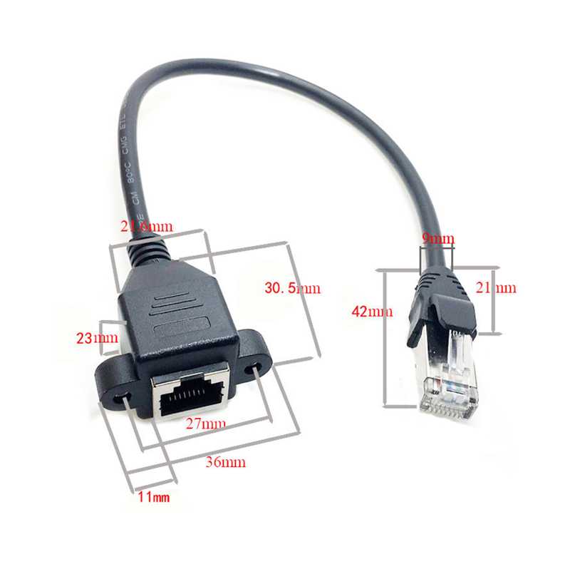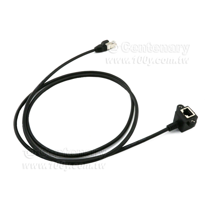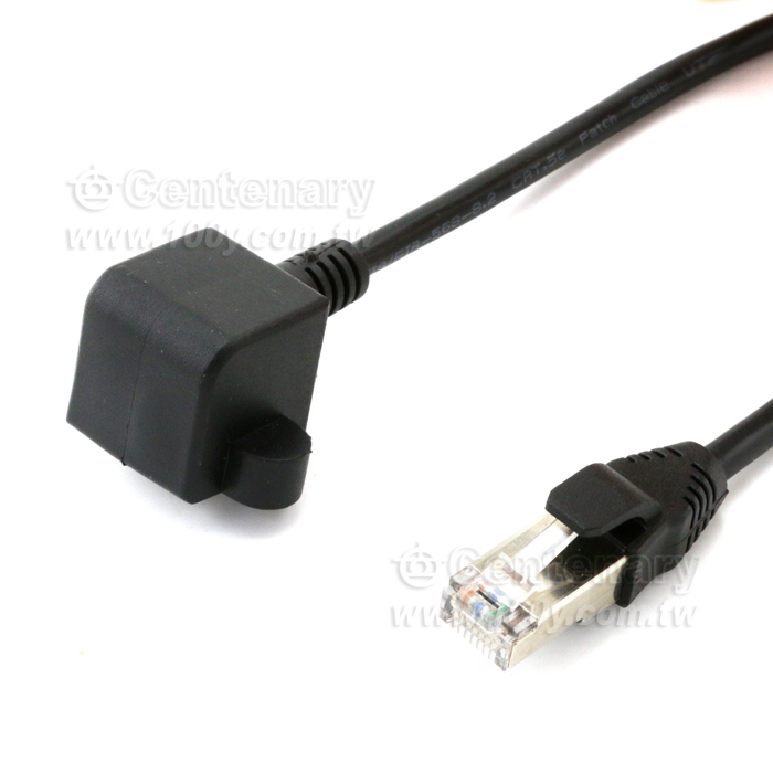 RJ45 公對母 Cat5.e 帶螺絲孔可固定網路延長線 30cm彎頭90°