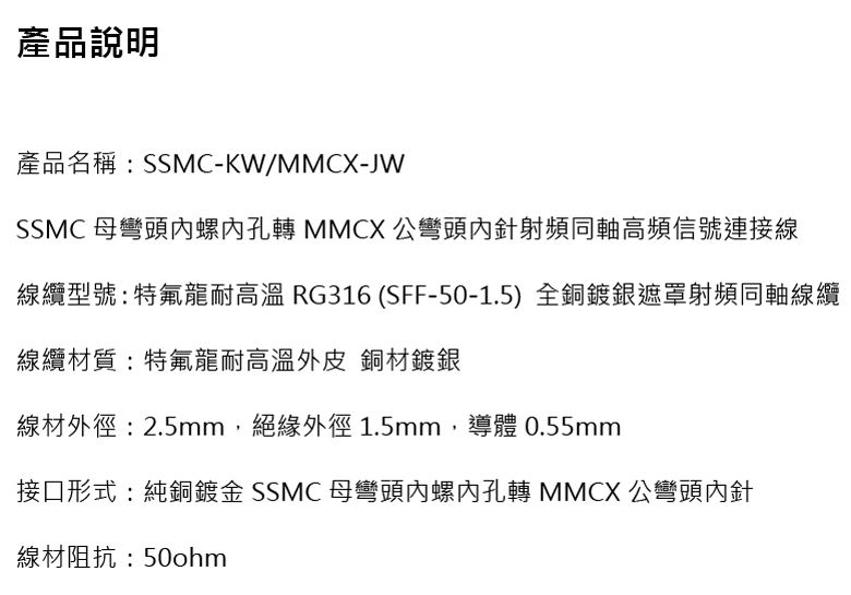 MMCX-JW彎公頭轉SSMC-KW彎母頭