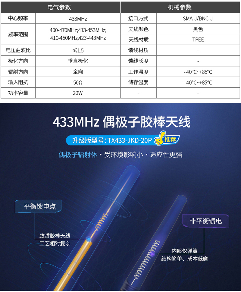 433MHz 高增益膠棒天線