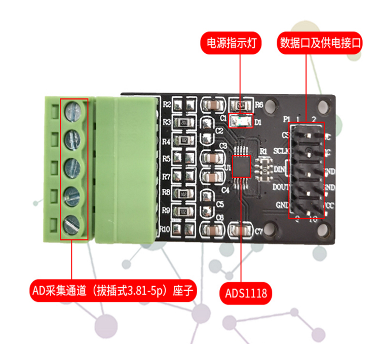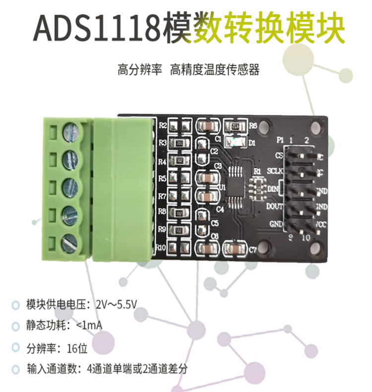 16位模數轉換模塊4路ADC 內部基準溫度傳感器SPI數據采集