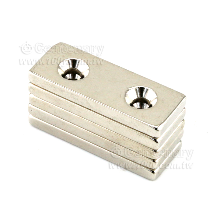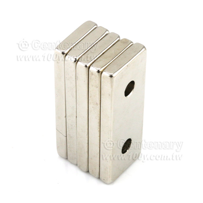 長方形+雙孔磁鐵-50X20X5mm孔徑5mm