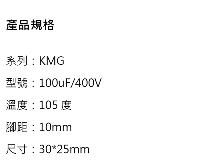 NCC KMG-100uF/400V ±20% 30*25mm 105℃