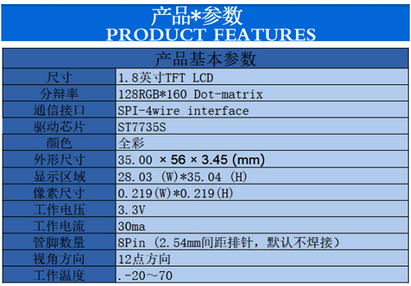 1.8寸-TFTLCD-4SPI-彩色-st7735