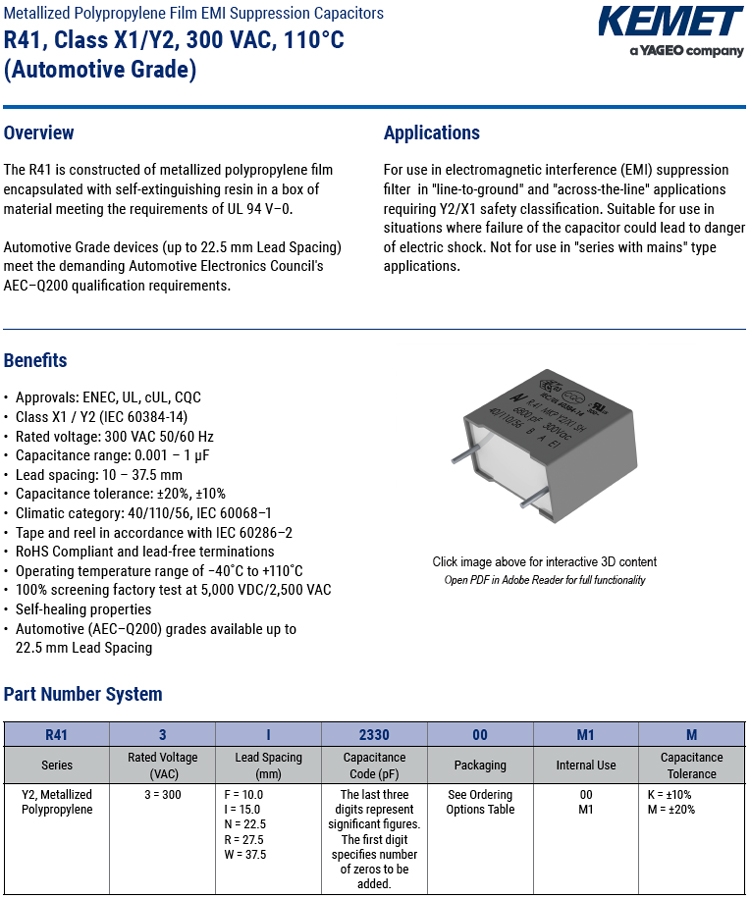 薄膜電容 0.0022uF/300VAC ±20% P:10mm 13W*3.8L*8.5H