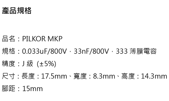 MKP 0.033uf/800v P15 5% 17.5*8.3*14.3MM