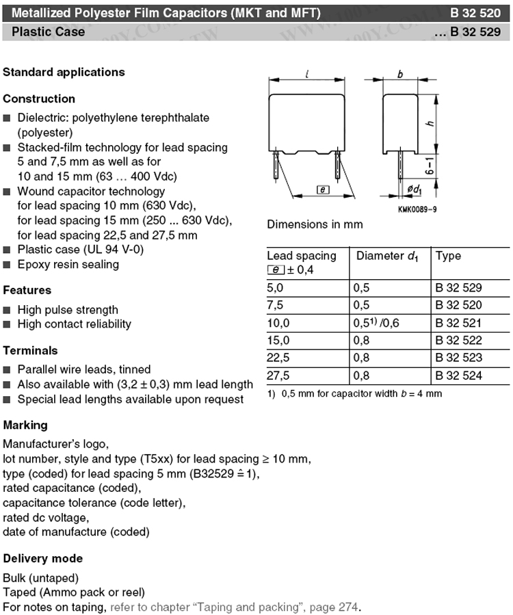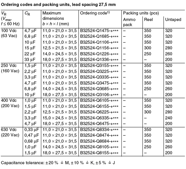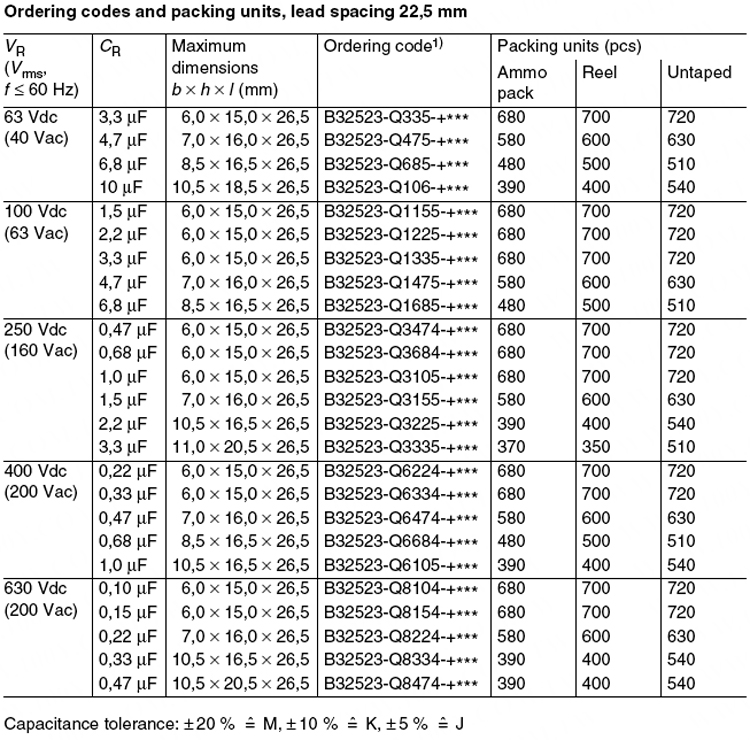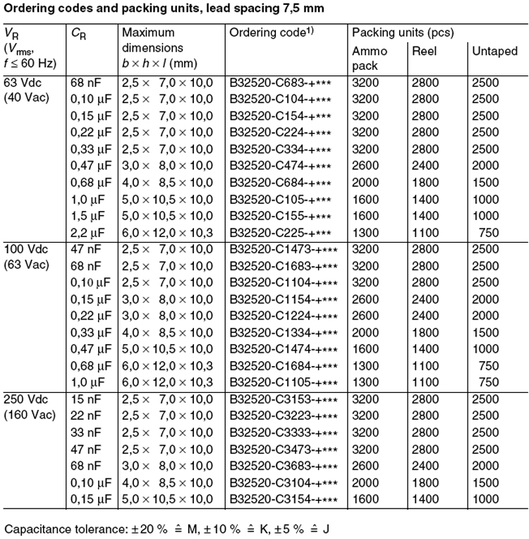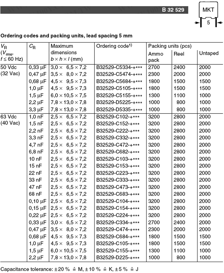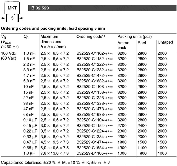 金屬皮膜電容1.0uf/63vVdc ±10% P:5mm