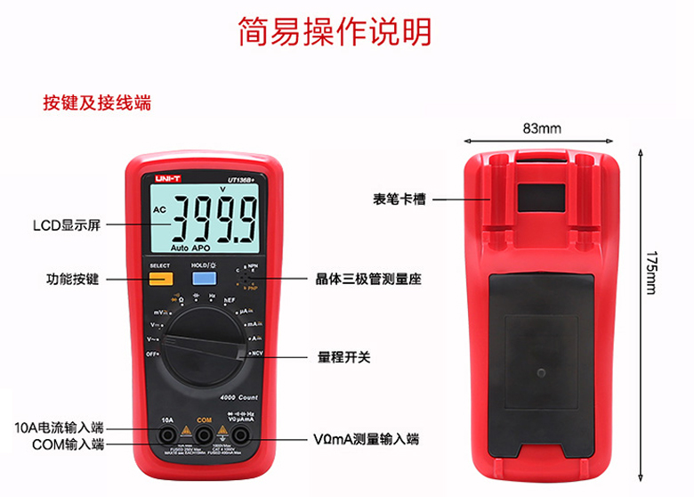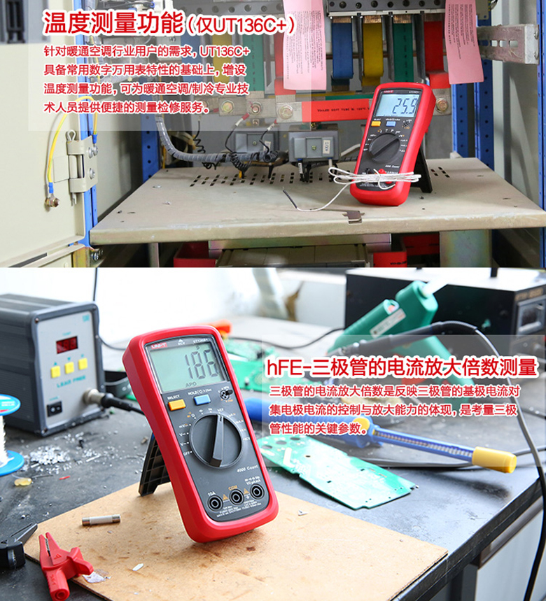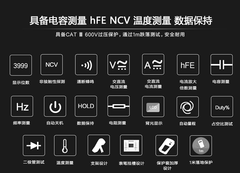 數位萬用表多功能防燒高精度測電容家用電工萬能表(帶溫度測量)