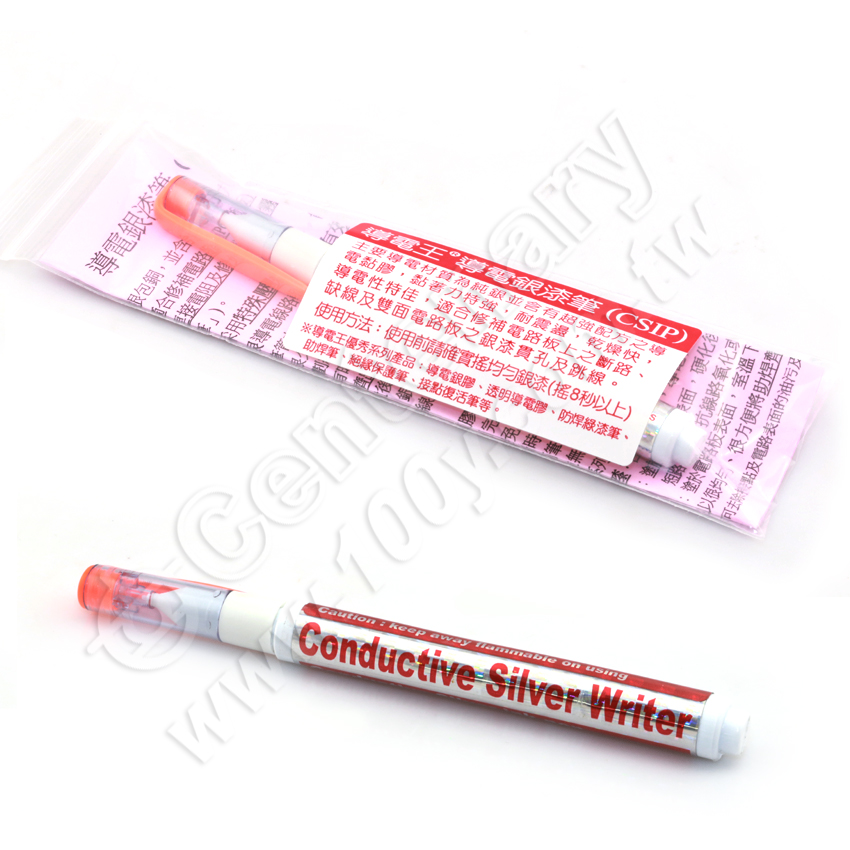 主要導電材質為純銀,並含有超強配方之導電黏膠,黏著力特強,耐震盪,乾燥快,導電性特佳,適合修補電路板(PCB板)上之缺陷、斷腳及跳線,雙面電路板之銀漆貫孔,降低電線連接電阻及修補汽車除霧電熱線之斷線等方面(亦有人稱為「導電筆」或「導電銀液筆」)。