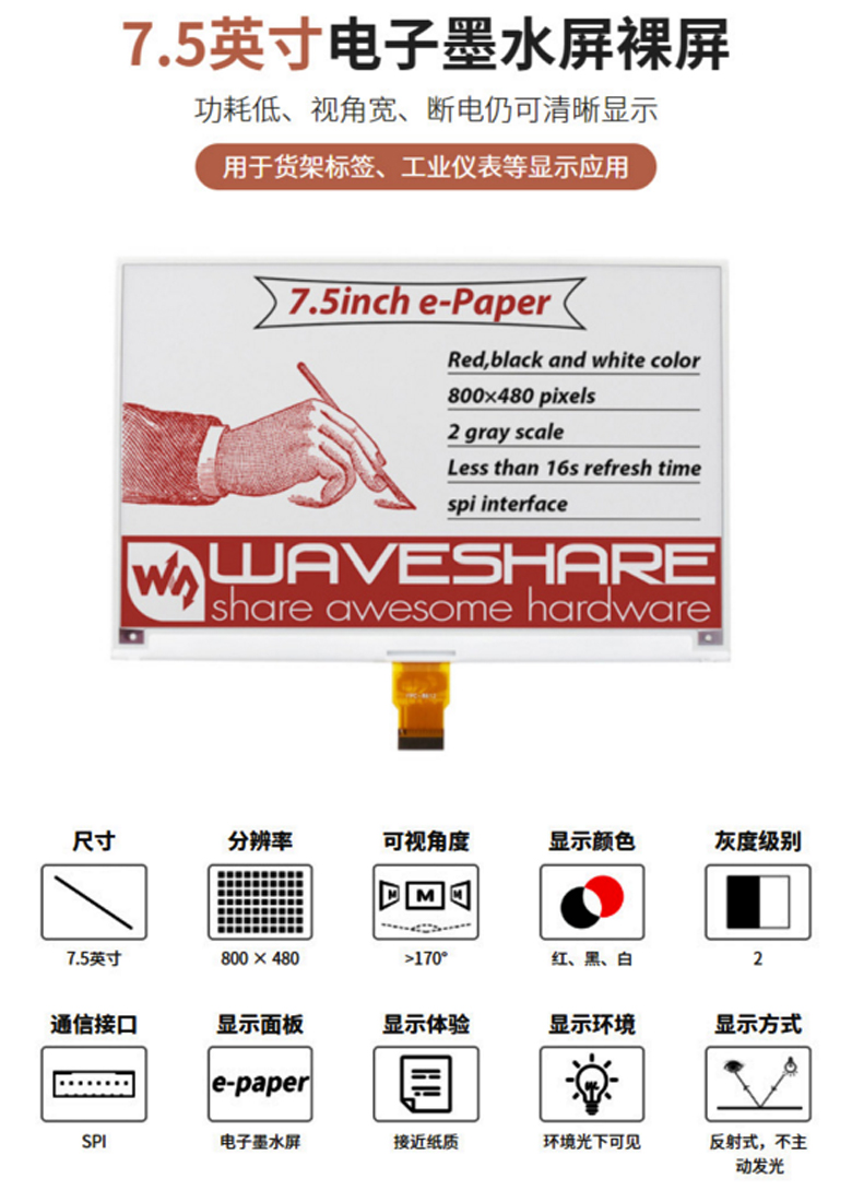 7.5-e-Paper-紅黑白三色屏