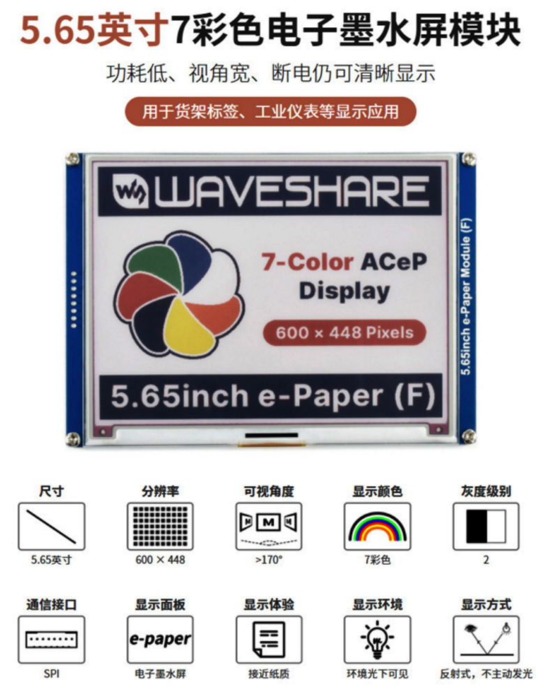 5.65-e-Paper-RGB墨水屏模組