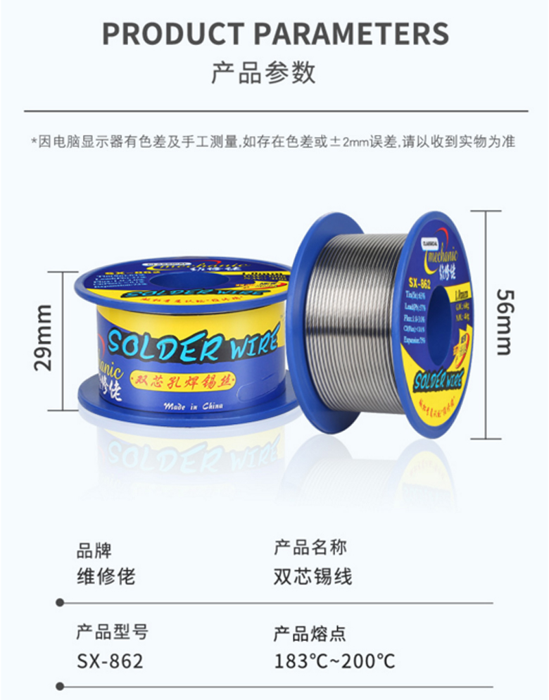 雙芯孔含鉛焊錫絲-帶松香免清洗 183~200 ℃
