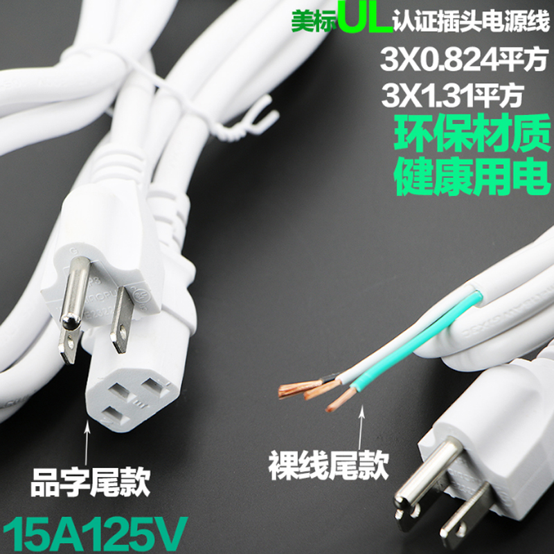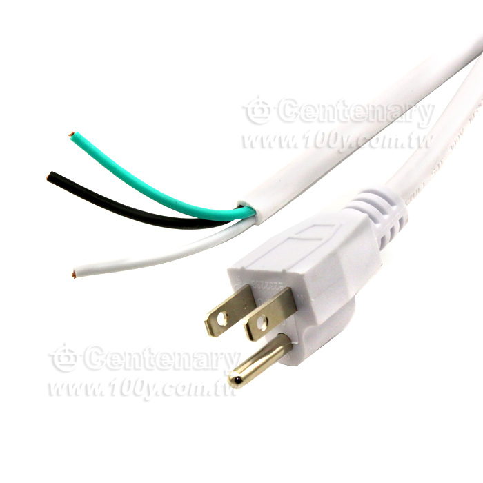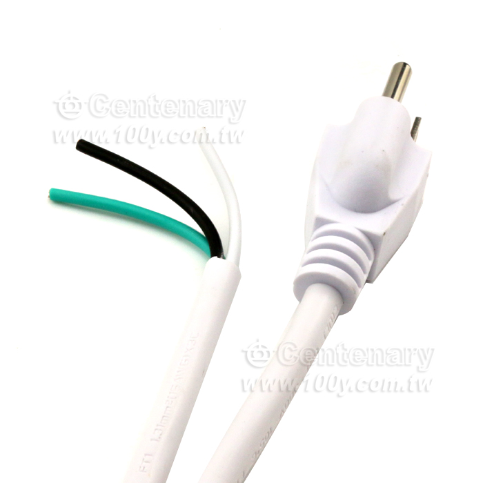 美標白色三插頭電源線裸線尾