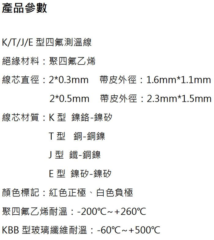 鐵氟龍乾紋補償導線-電熱偶K型測溫線